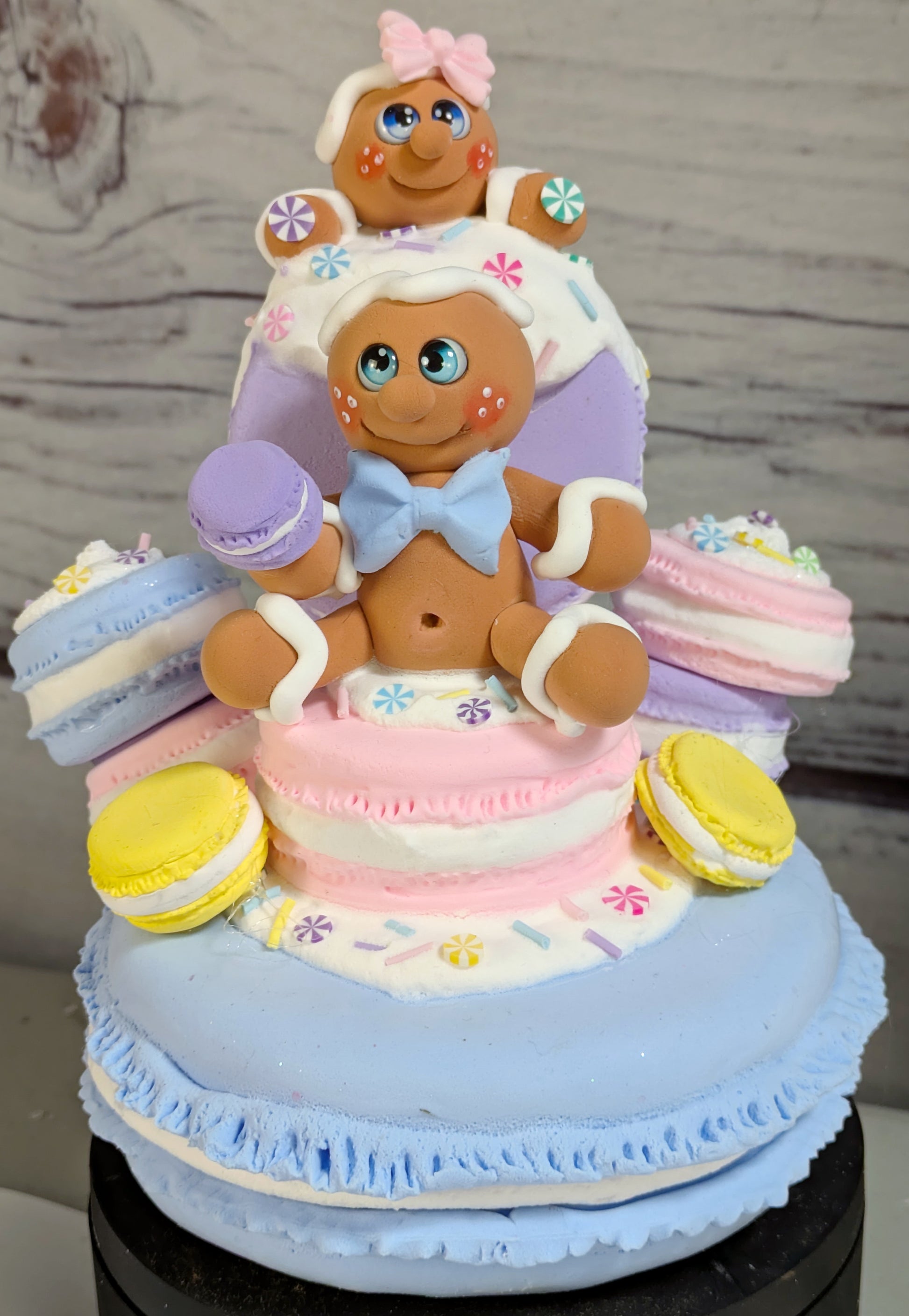 Handmade Gingerbread Macaron Centerpiece. 2 gingerbread 10 macarons different sizes with faux icing and sprinkles . Approx. 6 1/2 inches by 5 3/4 inches wide. Will be ready to ship on May 27th.